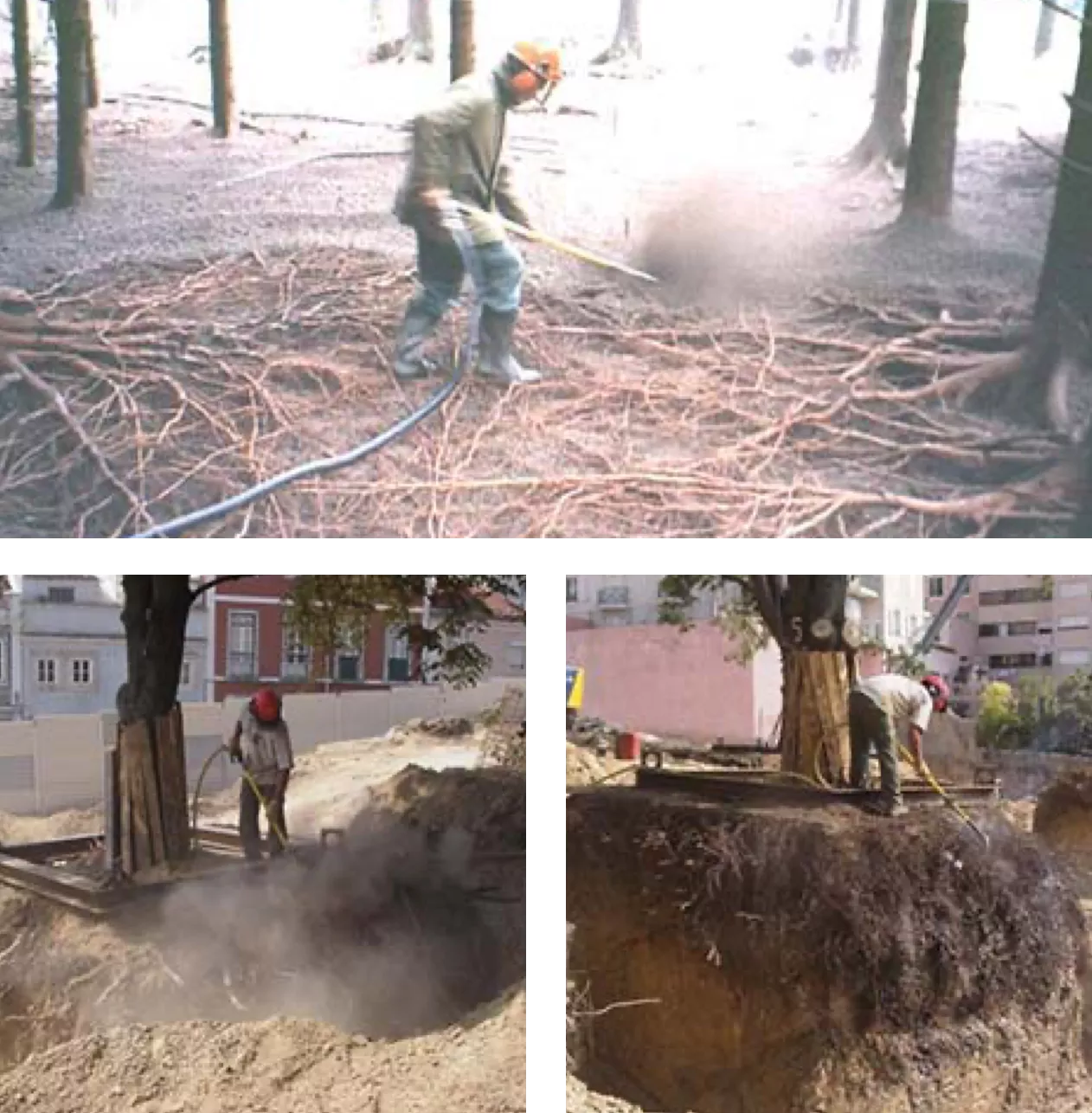 The air spade is a state-of-the art excavation tool that is revolutionising the arboricultural industry. The air spade uses great volumes of compressed air to remove and break up soil—even hard clay—without damaging roots, cables or buried utility lines. The focused air stream cuts through soil quickly and with great accuracy in considerably less time than conventional digging, allowing for a more efficient service.
